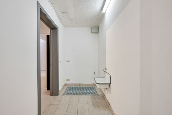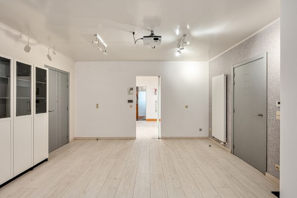 Het handelsgelijkvloers geniet een sterke visibiliteit en beschikt over parkeergelegenheid op de markt en aan de overzijde van de straat. De indeling omvat een aparte inkom, winkel- of ontvangstruimte, werk- of behandelruimte, vergaderruimte, volledig geïnstalleerde keuken, badkamer met douche en toilet, archiefruimte en wasruimte. Ideaal voor zelfstandigen.