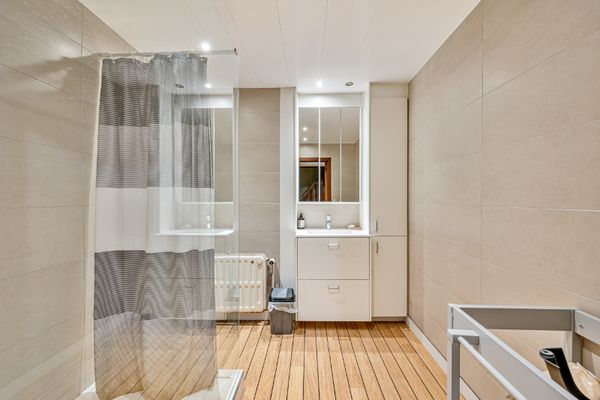 Het duplex-appartement heeft een afzonderlijke toegang en biedt comfortabel wonen. Via een ruime bergruimte bereikt u de lichtrijke leefruimte met eethoek en aansluitend terras. Verder zijn er een berging, wasplaats, vier slaapkamers, een badkamer met inloopdouche en zolderruimte.