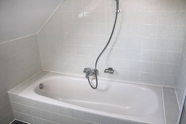 - Badkamer met bad, douche en lavabomeubel